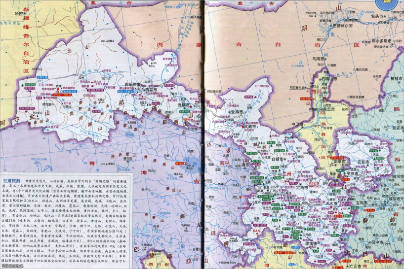 浓缩河西走廊精华地形地貌:黄土高原、极旱地带、戈壁、荒漠、沙漠、丹霞地貌、石窟古迹。和河西走廊浓厚的历史文化古迹合二为一。